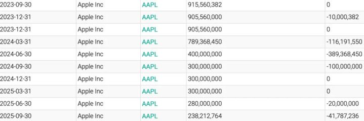 限度三季度末,伯克希尔如故调解12个季度净卖出股票,其中最受眷注的是对苹果公司的减合手。