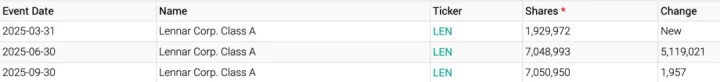 限度三季度末,伯克希尔合手有约705万股莱纳股票,二季度时该公司对莱纳的增合手幅度高达265%。莱纳是好意思国最大的住宅建筑商之一,限度11月14日,该公司股价在往日一年下落跳动22%,但当今在伯克希尔的投资组合中所占比例略低于3%。