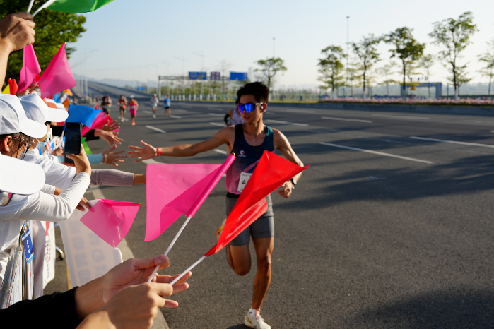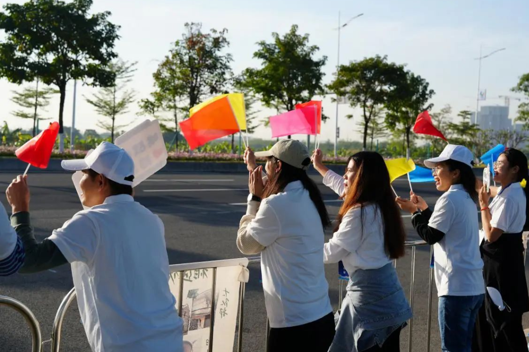 从明珠湾大桥直下,一齐往前,珠江街“氛围组”翘首以盼。“加油!”“珠江街迎接您”“坚执住!”60余名职责主谈主员沿赛谈一侧耸峙,排成“应援”长龙,手执赛事宣传口号和五彩小旗,掷地有声的加油声音势完全,活跃赛场邻近烦恼的同期,充分展示出珠江街后生朝气蕃昌、积极进取的精神风貌。不少跑者在烦恼的感染下,身不由己挥手、大呼、点赞,与职责主谈主员击掌。